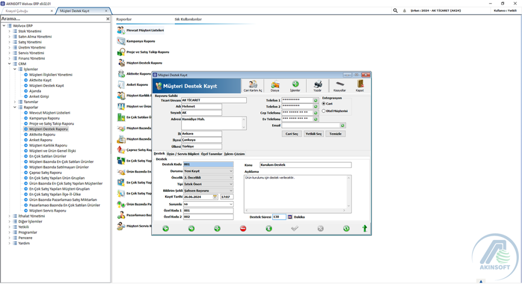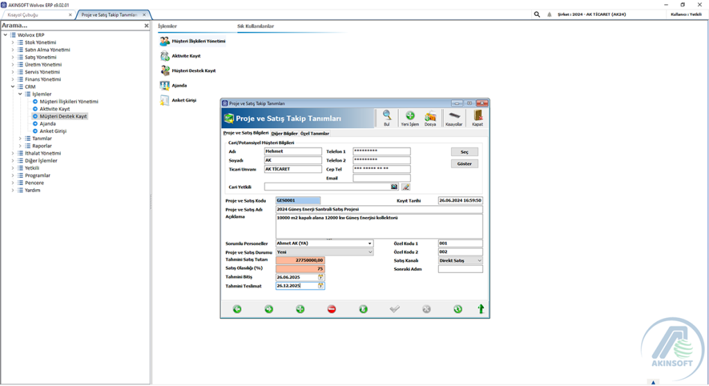 AKINSOFT WOLVOX CRM Programı , WOLVOX Erp' nin bir parçasıdır ve tam entegrasyonludur.