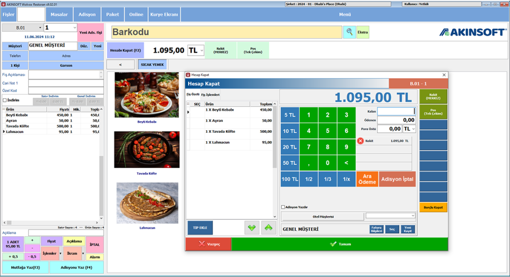 AKINSOFT WOLVOX Restoran Programı, Restoran, kafe, bar, otel, spa ve bilardo salonlarında adisyonları takip etmek için kullanabilirsiniz.